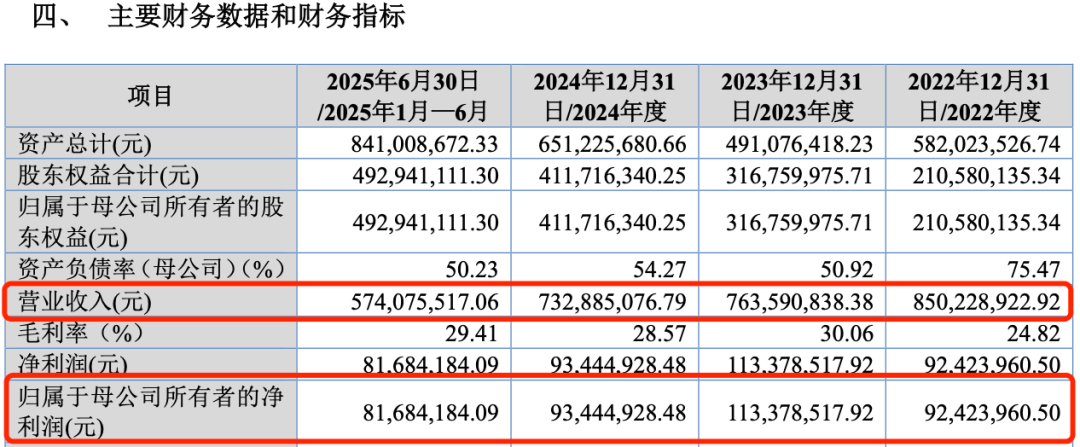2022年至2025年上半年(以下简称“报告期”),沛城科技实现营业收入8.50亿元、7.64亿元、7.33亿元和5.74亿元,2023年和2024年连续两年下滑。