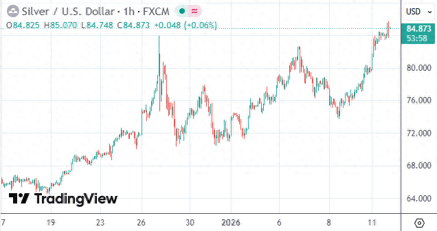 截至发稿,现货白银价格升超6%报每盎司84.87美元,日内一度涨逾7%至85.74美元;现货黄金则一度涨2.4%至每盎司4620.34美元,均刷新了2025年12月下旬录得的历史纪录。