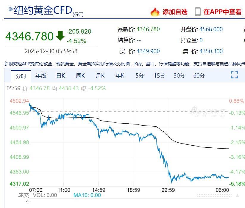 国际贵金属大幅收跌,COMEX黄金期货跌4.45%,报4350.2美元/盎司。