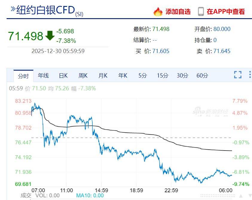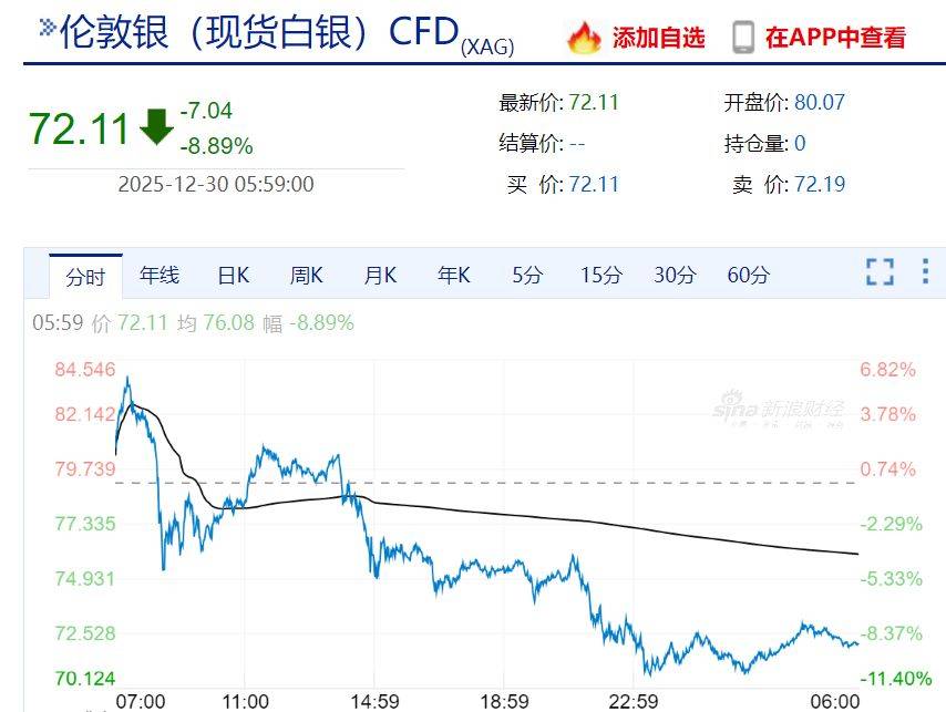 COMEX白银期货跌7.2%,报71.64美元/盎司。