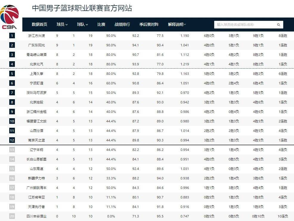 CBA联赛第十轮战罢五场,几场比赛过后,积分榜排名也悄然发生变化。广厦男篮稳固了榜首位置,而广东男篮紧随其后,两队均以九胜一负的战绩领跑。北京男篮憾负广厦,与青岛男篮同为八胜两负,青岛凭借小分优势位列第三,北京则排在第四。上海男篮近期状态火热,豪取六连胜后同样以八胜两负的战绩位居第五,大有冲击四强之势。宁波男篮虽败犹荣,第六的位置暂时稳固。反观深圳男篮和北控男篮,由于胜场优势不明显,预计排名将有所下滑。