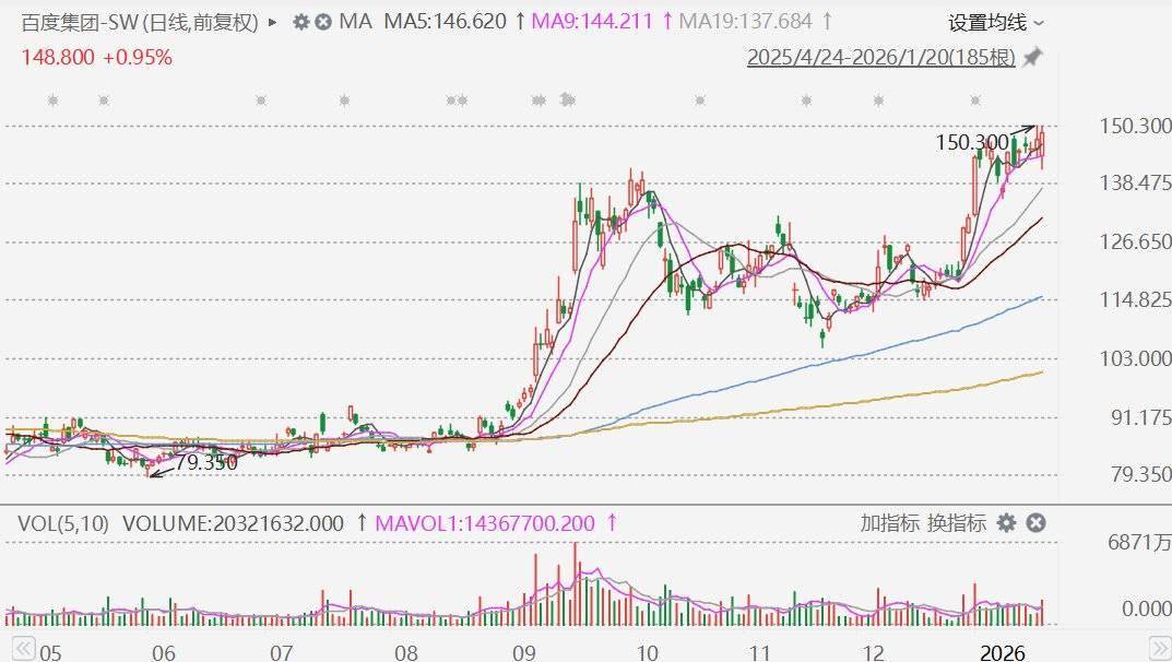 港股市场百度集团-SW(9888.HK)收涨0.95%,报148.8港元,创2023年8月以来收盘新高。消息面上,百度旗下文心助手月活用户数已突破2亿,与豆包、千问形成国内三大亿级AI入口。文心助手是百度APP推出的AI智能助手,依托文心大模型和“百度猎户座”AI引擎,实现了搜索与AI的深度重构,是集深度思考、多模态交互与全场景服务于一体的全能搭子。