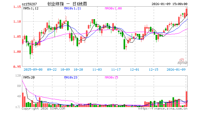 1月9日,创业板综ETF博时(159287)涨1.15%,成交额6643.36万元。当日份额增加4400.00万份,最新份额为3.66亿份,近20个交易日份额增加2.72亿份。最新资产净值计算值为4.18亿元。