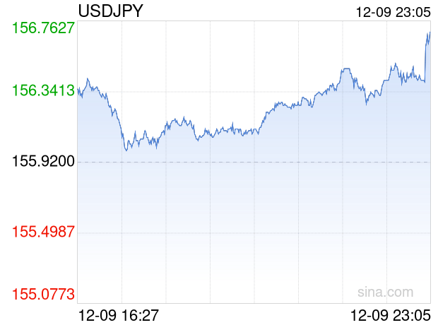 新浪外汇消息2025年12月09日,截至23时05分,外汇市场上美元兑日元汇率突破1美元兑换156.7100日元。涨幅为0.5067%