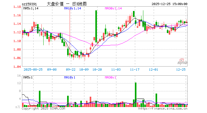 12月25日,大盘价值ETF(159391)涨0.26%,成交额84.89万元。当日份额减少500.00万份,最新份额为1.91亿份,近20个交易日份额减少6600.00万份。最新资产净值计算值为2.19亿元。