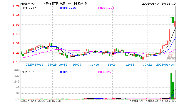 传媒ETF华夏(516190)业绩比较基准为中证文娱传媒指数收益率,管理人为华夏基金管理有限公司,基金经理为赵宗庭,成立(2021-09-09)以来回报为52.06%,近一个月回报为30.08%。