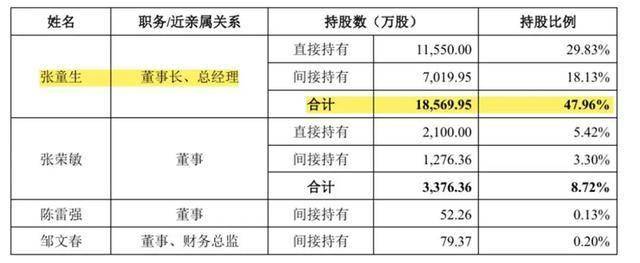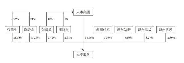 截止递表,人本股份总股本3.87亿股,由人本集团持股30.99%,而人本集团由张童生持股 55%,陈岩水持股 30%,张荣敏持股 10%,汪绍兴持股5%。