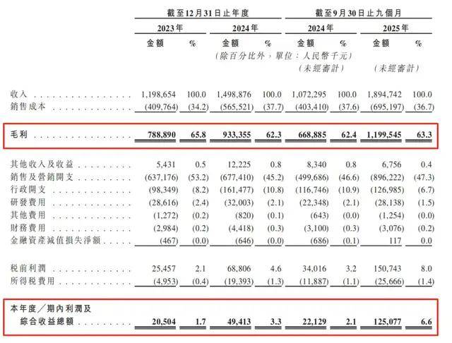 招股书里的增长曲线比网红的夸夸其谈更实在:2023 年营收 12 亿,2024 年 15 亿,2025 年前 9 个月直接逼近 19 亿,三年间营收翻了近 1.6 倍。