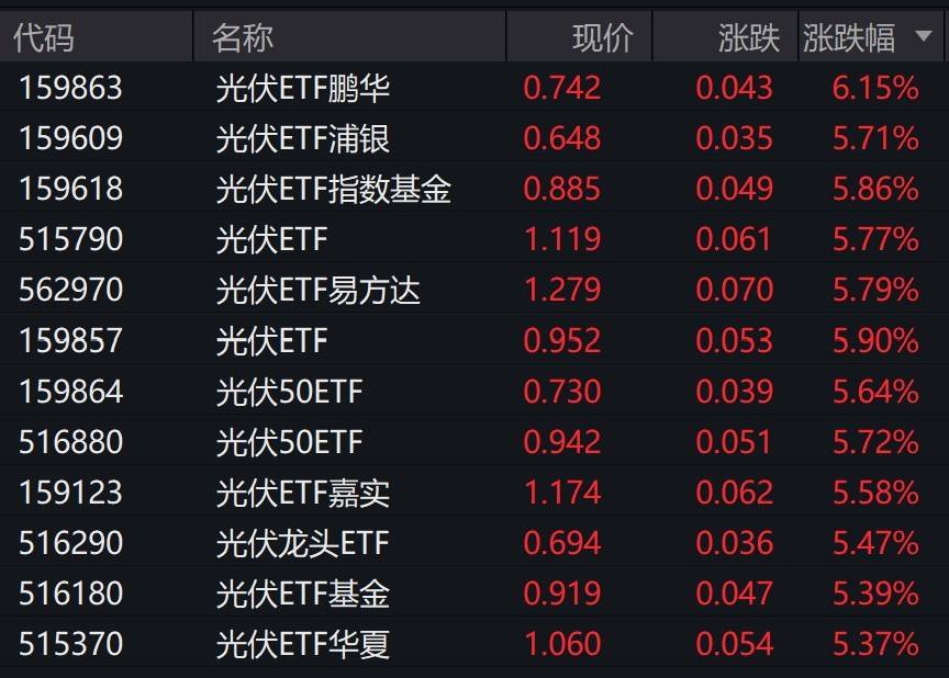受盘面影响,光伏相关ETF集体涨超5%。