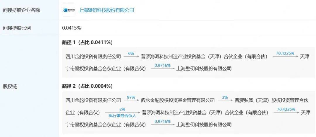 对壁仞科技的投资,系四川金舵投资公司通过天津宇珩股权投资基金合伙企业(有限合伙)完成,壁仞科技上市后,四川金舵投资公司间接持有壁仞科技0.0415%的股份,持股市值为3669万港元。