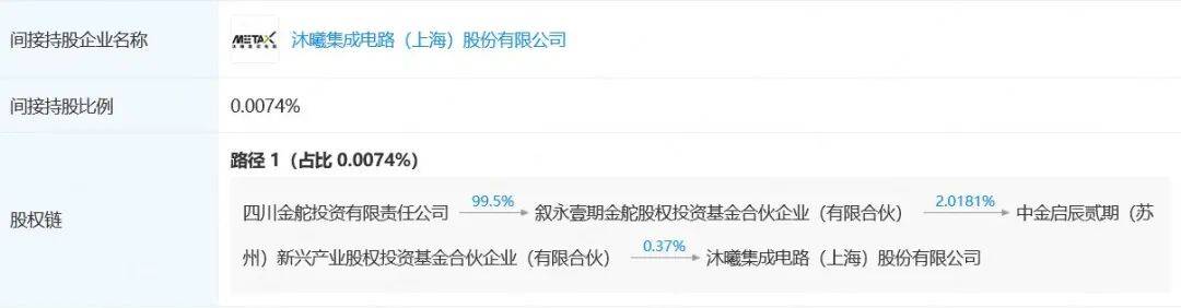 对沐曦股份的投资,系四川金舵投资公司通过中金启辰贰期(苏州)新兴产业股权投资基金合伙企业(有限合伙)完成,沐曦股份上市后,四川金舵投资公司间接持有沐曦股份0.0074%的股份,持股市值为1769.34万元。