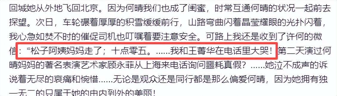 何晴的病情缠绵长达十年,而身为儿子的许何始终在母亲的身边尽孝。何晴的闺蜜徐松子在一篇悼念文章中提到,在这十年的病痛中,许何从未离开过母亲的身边,陪伴她度过了艰难的岁月。令人动容的是,当年许亚军曾在采访中提到,等儿子成年后,会让他学会独立。然而,在许何还未成年时,他便早早地肩负起了照顾母亲的责任。