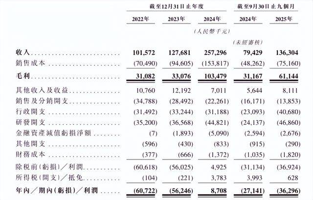 据企业财报显示,2022年至2025年9月,极视角收入分别为1.02亿元、1.28亿元、2.57亿元和1.36亿元,但其利润分别约为-6072.2万元、-5624.6万元、870.8万元和-3629.6万元。按业务划分,2022年、2023年、2024年和2025年前三季度(下称报告期内),极视角的收入主要来自于AI计算机视觉解决方案,占比分别为100%、100%、75.9%和81.8%。报告期内,极视角经营活动产生的现金流量长期呈净流出状态,分别为-7914.3万元、-7296.3万元、-1759.2万元和-2137.3万元。对此,公司称,主要是对税前利润进行两个项目的调整:非现金及非经营项目、营运资金变动。