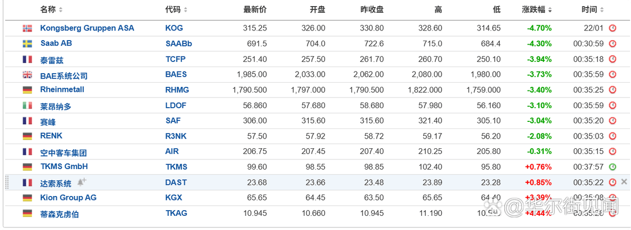 英国伦敦上市、对军工股“照收不误”的Future of Defence UCITS ETF(NATO.LN)收跌0.87%。