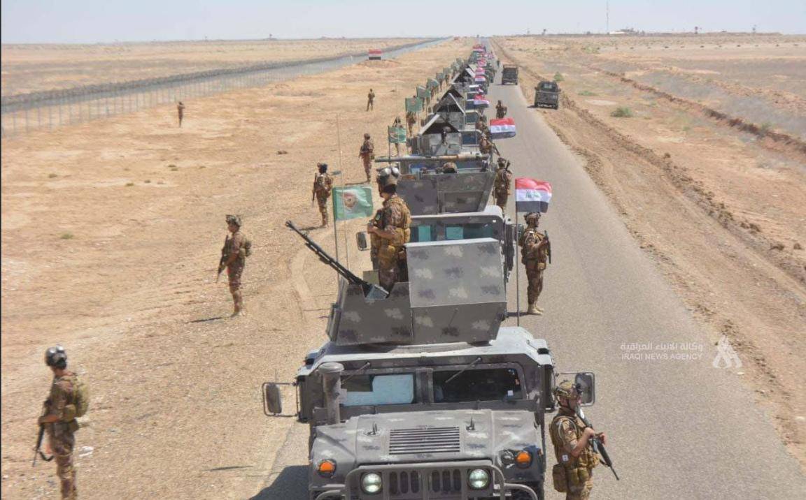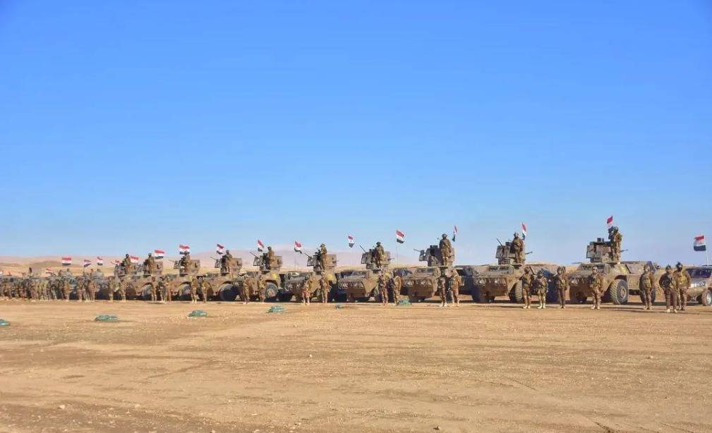 伊拉克军队的轮式装甲车部队出击叙利亚-伊拉克边境