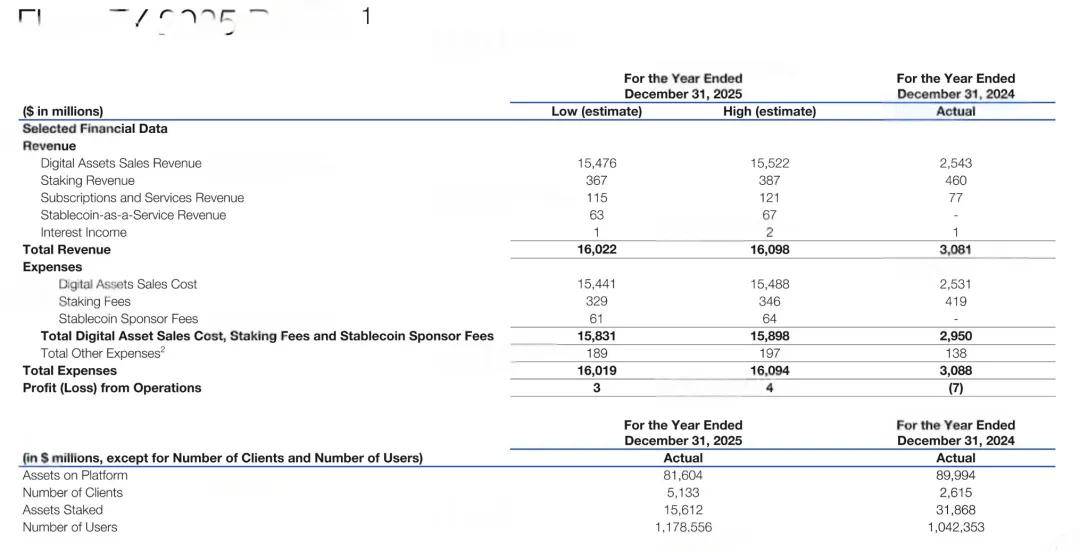 招股书显示,BitGo在2022年、2023年、2024年营收分别为25.11亿美元、9.26亿美元、30.81亿美元;运营亏损分别为7428万美元、3660万美元、698万美元;净利分别为46亿美元、-212万美元、1.57亿美元。