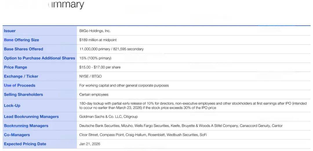 加密货币托管初创企业BitGo(股票代码:“BTGO”)昨日在纽交所上市,BitGo发行价为18美元,发行1100万股,募资2亿美元。