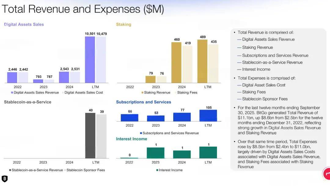 BitGo在2025年前9个月营收为99.96亿美元,上年同期的营收为19.41亿美元;运营利润为257万美元,上年同期的运营亏损为738万美元;净利为3525万美元,上年同期的净利为2715万美元。