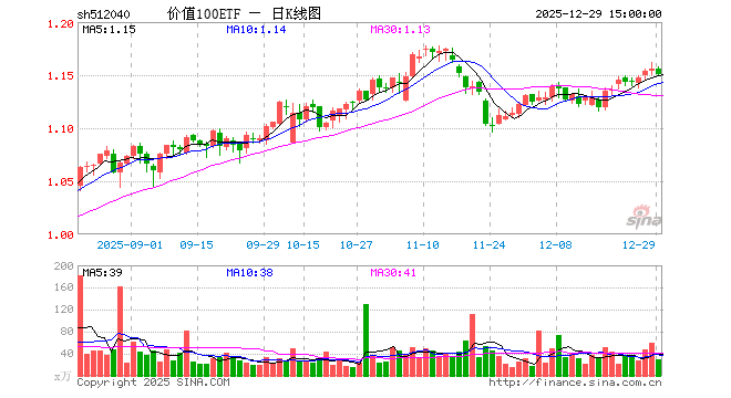 12月29日,价值100ETF(512040)跌0.43%,成交额3481.95万元。当日份额增加800.00万份,最新份额为19.26亿份,近20个交易日份额增加8100.00万份。最新资产净值计算值为22.14亿元。