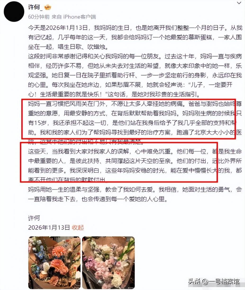 这不,近日迎来了她离世后的首个瞑诞,很多人都在评论区纷纷怀念她,她的儿子许何也终于发声了,句句催泪,让人看了心里酸酸的,