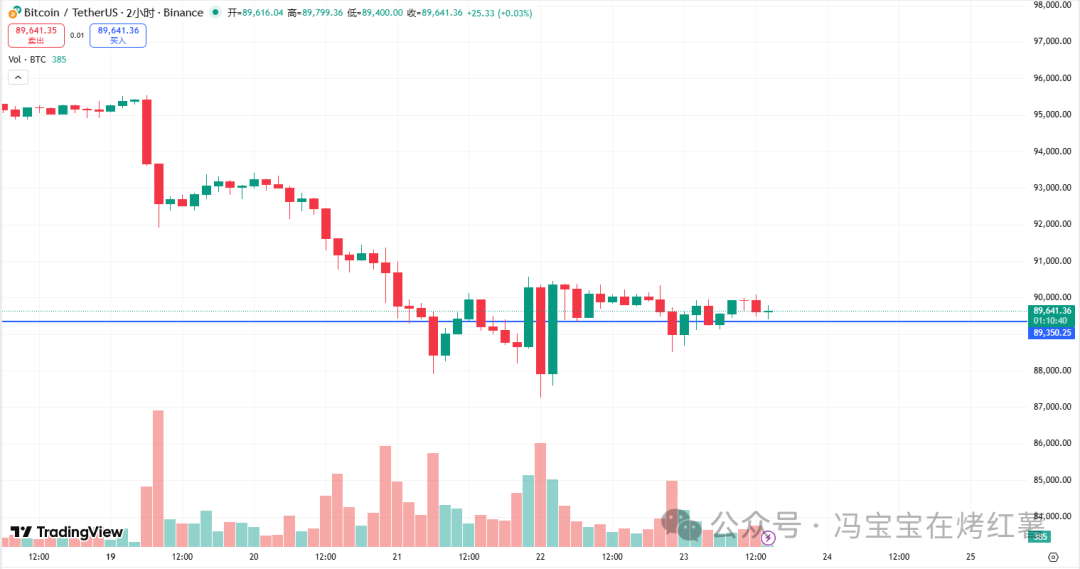 关注89350位置,若回踩不破,1-2小时级别有望延续反弹,上方压力90400、91600、93300附近。