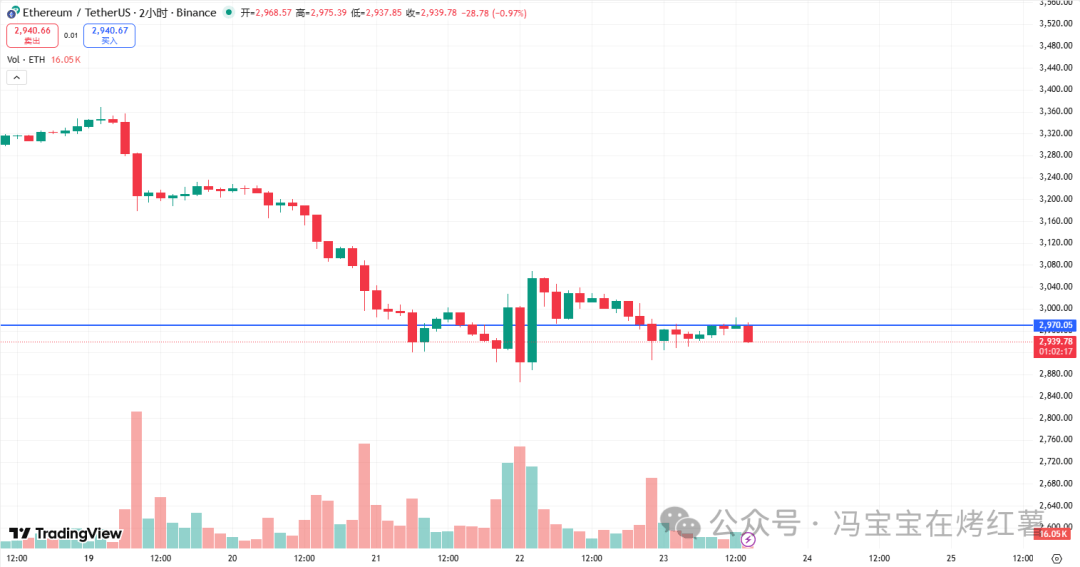以太坊也接到多单,今天最高来到2984,小小涨幅稳稳拿捏。目前小级别指标基本修复,日线放量回踩幅度不小,等着小级别慢慢带动修复就行。4小时也探了新低,要是走W底右侧回升就耐心等形态走出来。