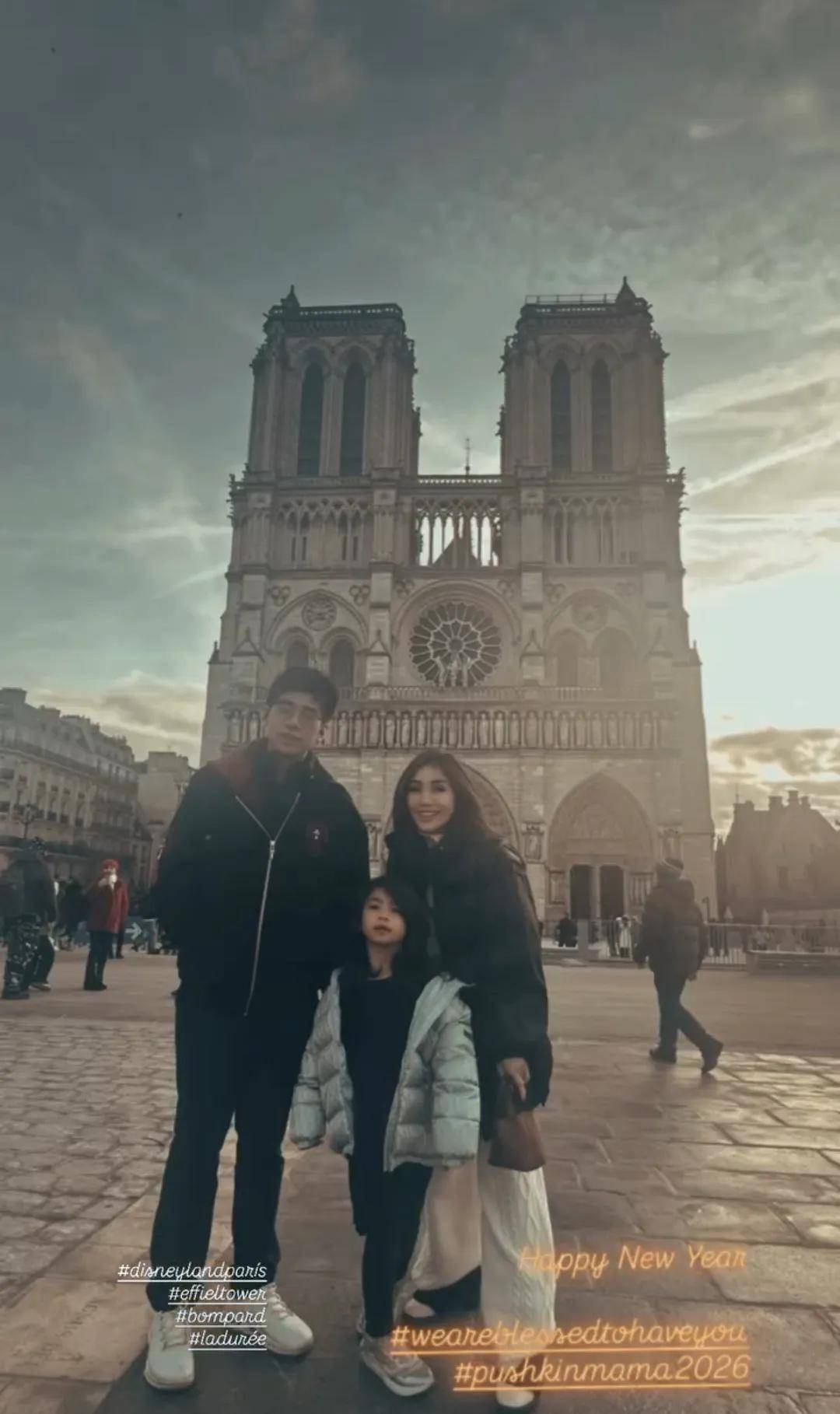 与此同时,何超盈和丈夫辛奇隆带着女儿荷包蛋前往法国度过了跨年。1月3日,何超盈分享了大量全家福照片,展示了他们一家三口在法国的游玩经历,游览了埃菲尔铁塔、卢浮宫和巴黎圣母院等地,画面充满了温馨与幸福。