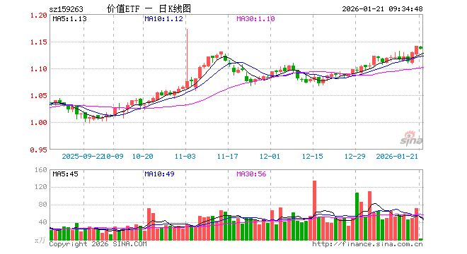 1月21日,价值ETF易方达(159263)开盘跌0.18%,报1.139元。价值ETF易方达(159263)重仓股方面,格力电器开盘涨0.05%,美的集团跌0.05%,兴业银行涨0.20%,中国石油涨0.40%,泸州老窖跌0.56%,潍柴动力涨0.46%,南山铝业涨0.15%,西部矿业跌0.63%,海尔智家跌0.19%,平安银行跌0.09%。