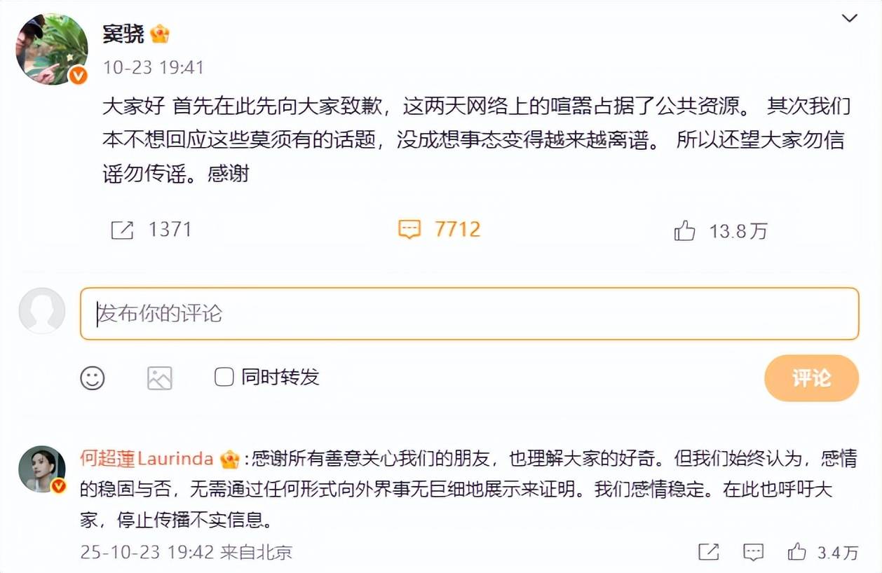 就在大家等着看后续的时候,何超莲和窦骁各自发了声,表示感情很好,外界猜测并不属实。