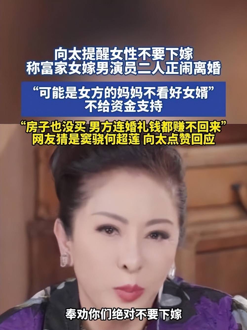 视频里,向太很直白地说,“家境好的女孩最好不要下嫁”。她还举了个例子,说圈里就有一对,男方为了办婚礼几乎花光了所有积蓄。
