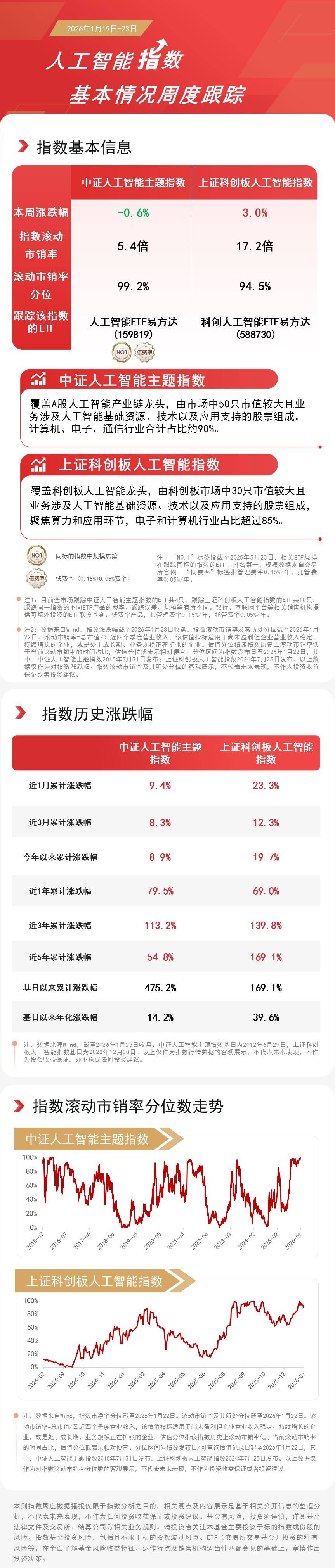 本周,AI产业链股震荡分化,CPO、光芯片概念股回调,芯片设计、软件开发板块则局部活跃,指数层面,上证科创板人工智能指数上涨3%,中证人工智能主题指数下跌0.6%。相关ETF受资金关注,Wind数据显示,人工智能ETF易方达(159819)本周前四个交易日合计“吸金”超3亿元,今日再获1.66亿份净申购。
