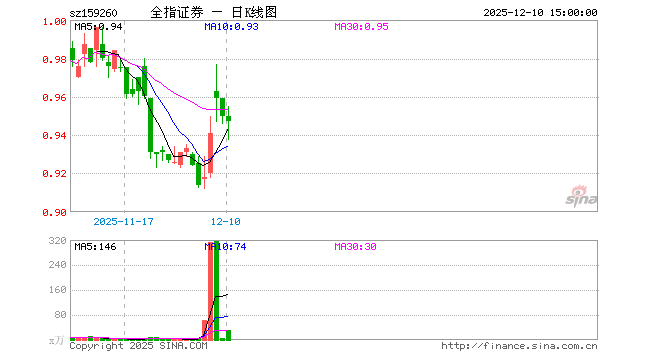 12月10日,证券指数ETF(159260)跌0.32%,成交额2949.73万元。当日份额增加2050.00万份,最新份额为8.81亿份,近20个交易日份额增加6.55亿份。最新资产净值计算值为8.37亿元。