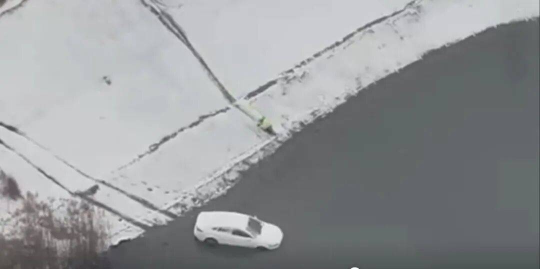 接警后,分局立即启动应急处置流程,快速调派周边警力赶赴现场开展救援。交警执勤五中队辅警李贯全接令后第一时间奔赴事发地点,发现涉事车辆已半身没入冰冷河水。他不顾雪天河岸湿滑陡峭的危险,俯身探查情况,却不慎从坡上滑入水中,岸边留下一道长长的滑痕。李贯全入水后,迅速靠近车辆核查车内人员状况。