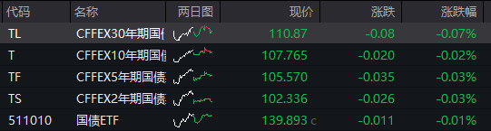 债市:国债期货再度下跌,截至收盘,30年期主力合约跌0.10%,10年期主力合约跌0.01%,5年期主力合约跌0.03%,2年期主力合约跌0.02%。