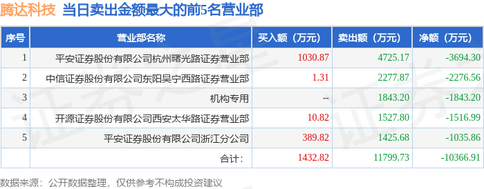 证券之星消息,沪深交易所2026年1月23日公布的交易公开信息显示,腾达科技(001379)因日换手率达到20%的前5只证券登上龙虎榜。此次是近5个交易日内第1次上榜。