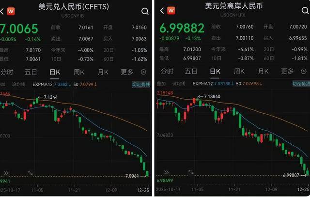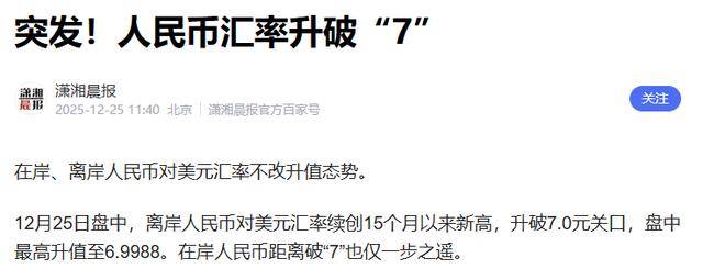 中间价持续偏强、11月底起国有大行轮番买美元,看着像是“维稳”,实则是在控速。你以为人民币想涨多快就涨多快?央妈的刹车,始终踩着。破7不是终点,是阶段战术。但想暴冲到6.5甚至6.0,难。