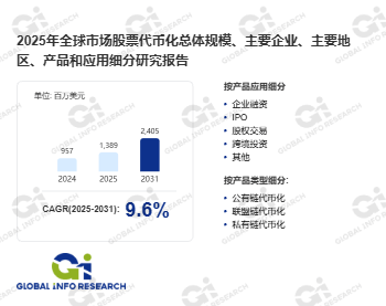 据GIR (Global Info Research)调研,2024年全球股票代币化收入大约957百万美元,预计2031年达到2405百万美元,2025至2031期间,年复合增长率CAGR为9.6%。