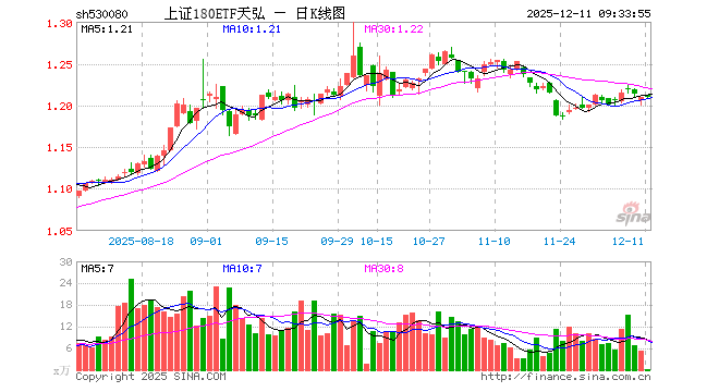 上证180ETF天弘(530080)业绩比较基准为上证180指数收益率,管理人为天弘基金管理有限公司,基金经理为张戈,成立(2025-01-08)以来回报为21.14%,近一个月回报为-3.35%。