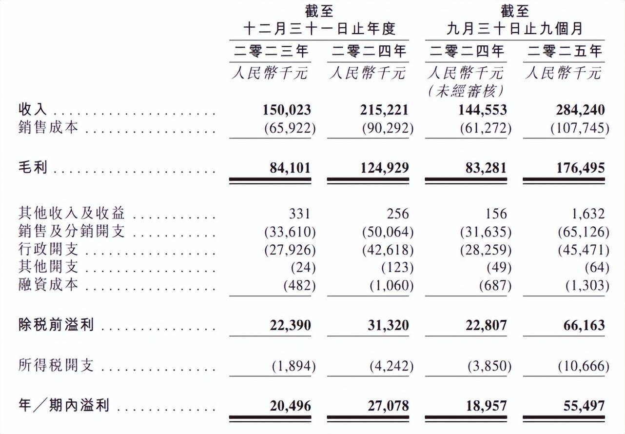 根据招股书,2023-2024年及2025年前三季度,誉研堂营收分别达到1.50亿元、2.15亿元及2.84亿元,净利润分别为2,049.6万元、2,707.8万元和5,549.7万元,毛利率分别为56.1%、58.0%及62.1%。节节高升,尤其是2025年业绩爆发力很强。