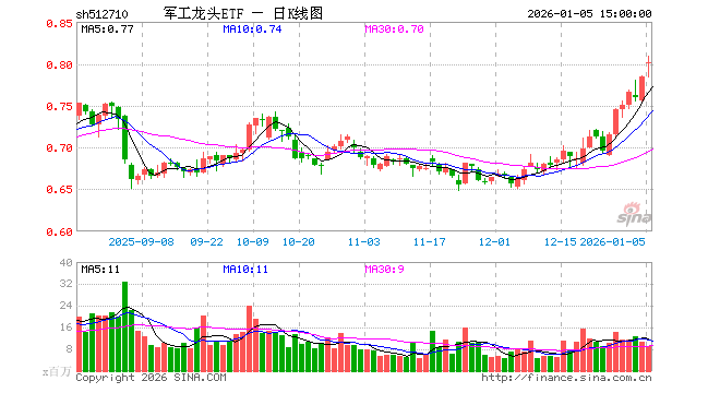 军工龙头ETF(512710)业绩比较基准为中证军工龙头指数收益率,管理人为富国基金管理有限公司,基金经理为牛志冬、王乐乐,成立(2019-07-23)以来回报为60.15%,近一个月回报为18.80%。