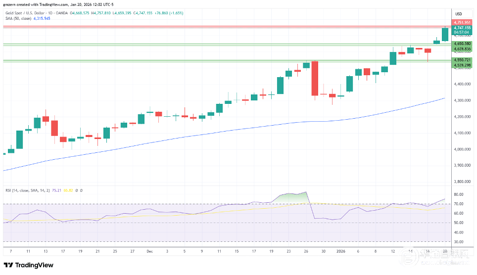 •金价突破4700美元水平,市场涨势仍在持续。