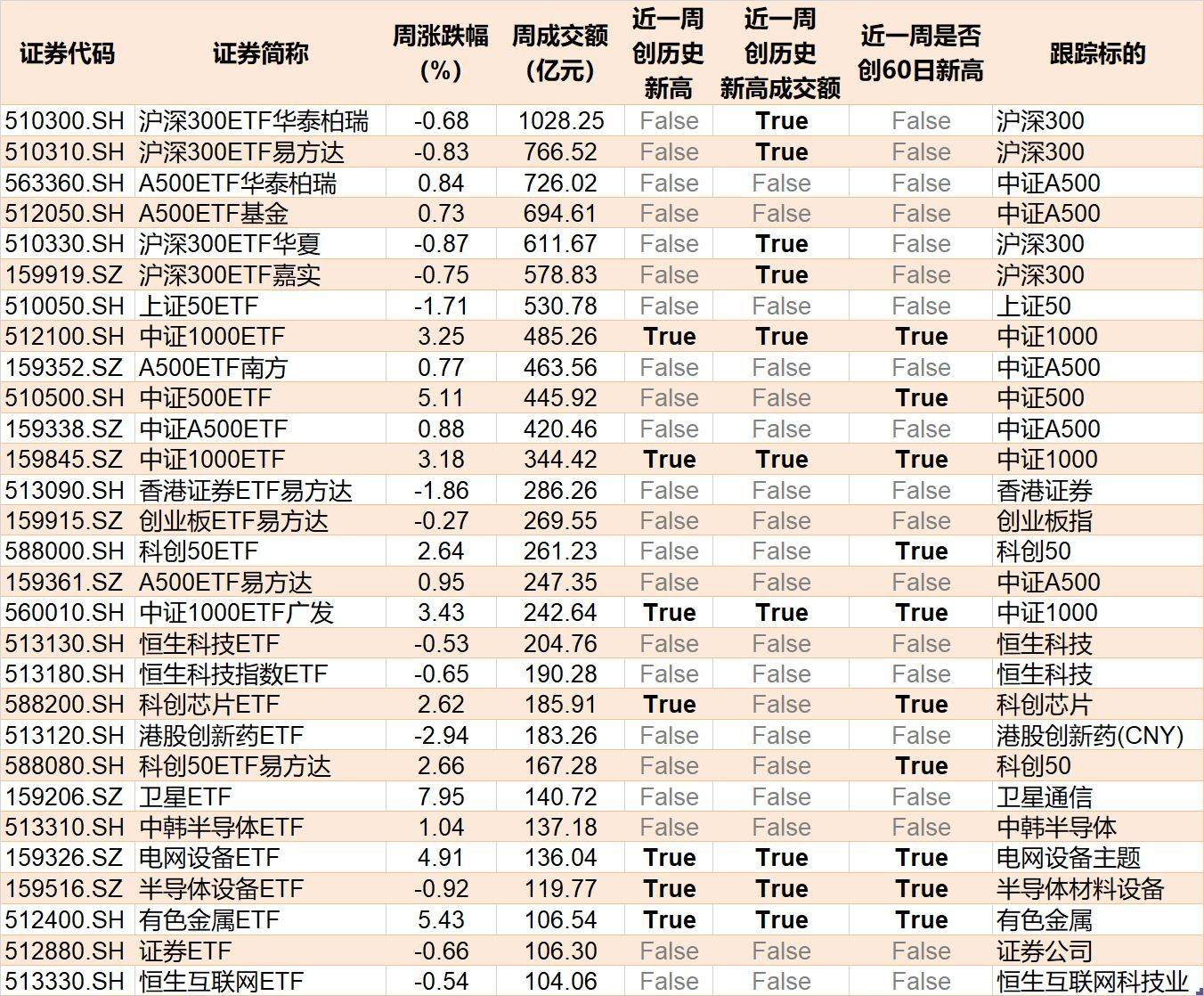 29只ETF周成交额超100亿元