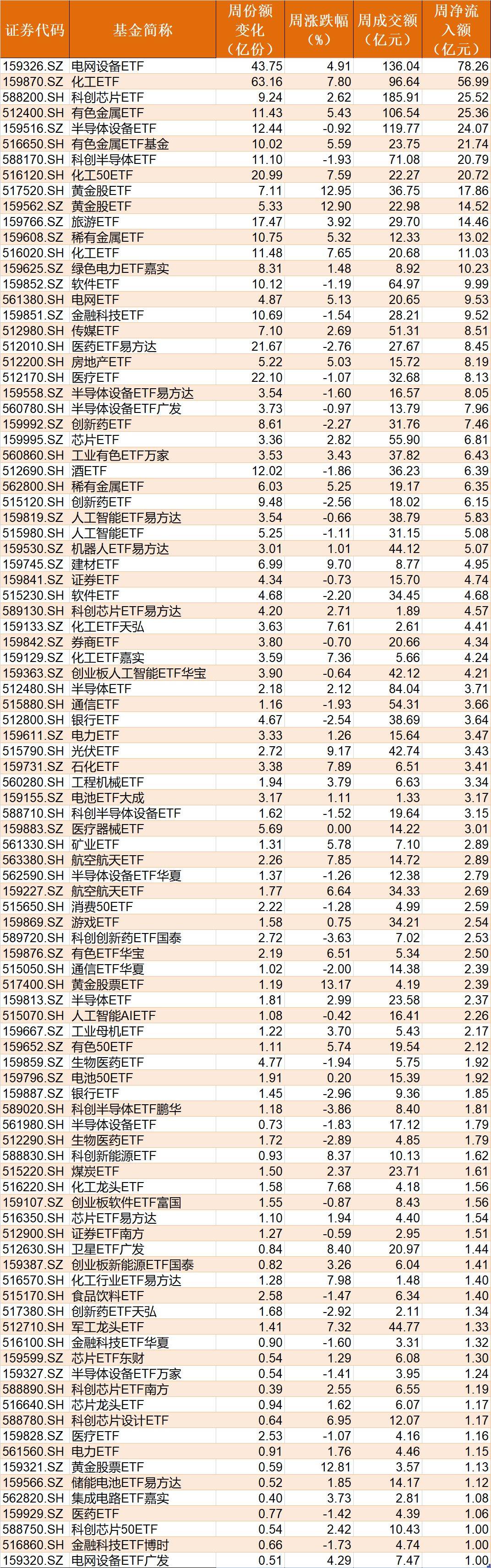 电网设备、化工等ETF受资金追捧