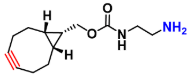 - 生物正交点击反应(IEDDA):endo-BCN-NH-ethylamine的endo-BCN环炔能够与Tetrazine分子发生快速、高选择性的环加成反应。这一反应在水性环境下无需催化剂,速度快,特异性高,几乎不干扰生物体系中的其他功能基团,因此非常适合在活细胞或生物材料中进行标记。通过这种反应,endo-BCN-NH-ethylamine可以将目标分子与Tetrazine标记的荧光探针、亲和配体或药物分子进行共价连接。