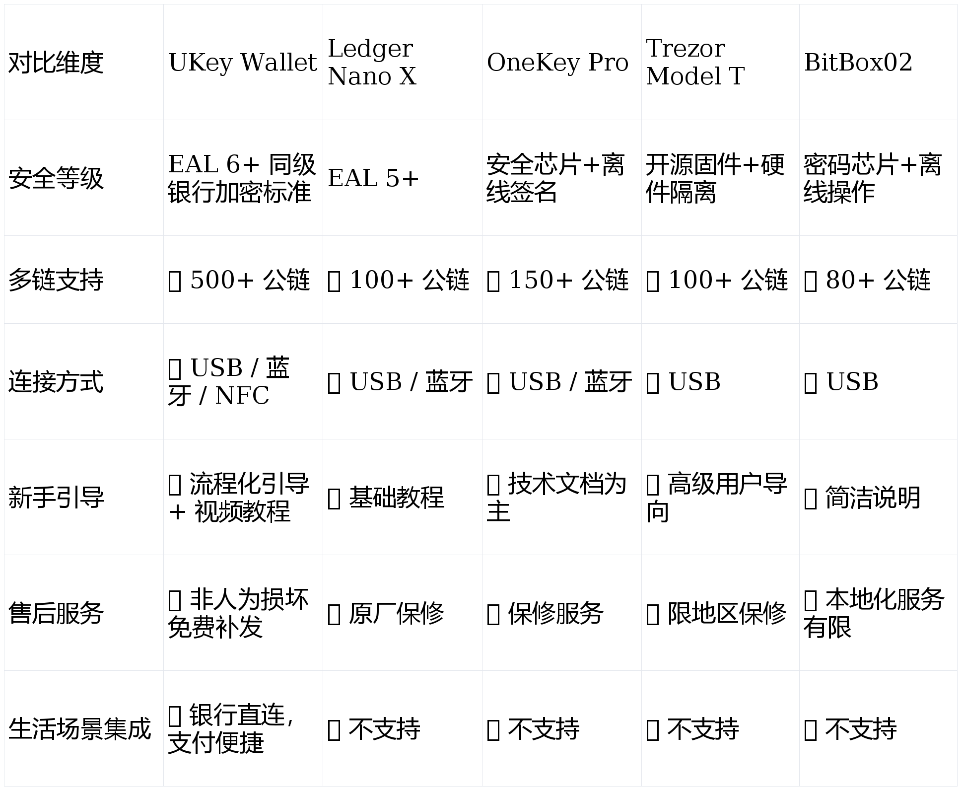 三、同类产品对比:UKey Wallet vs 主流硬件钱包