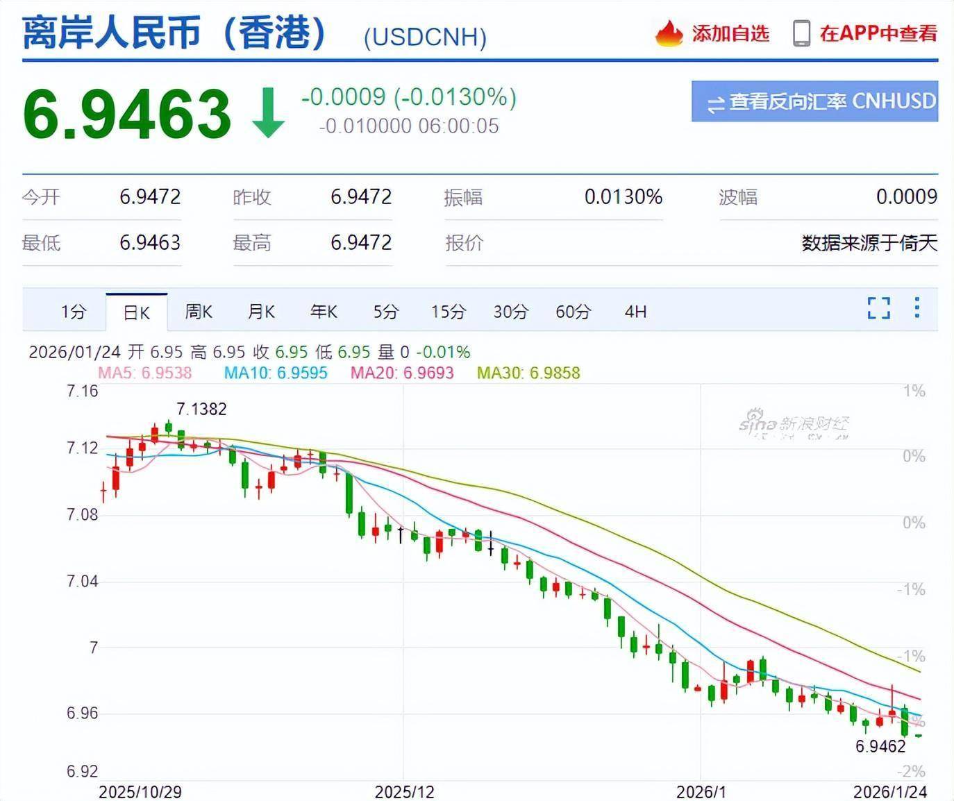 人民币对美元的汇率也创下了近期新高,升值到了6.9463兑换1美元。