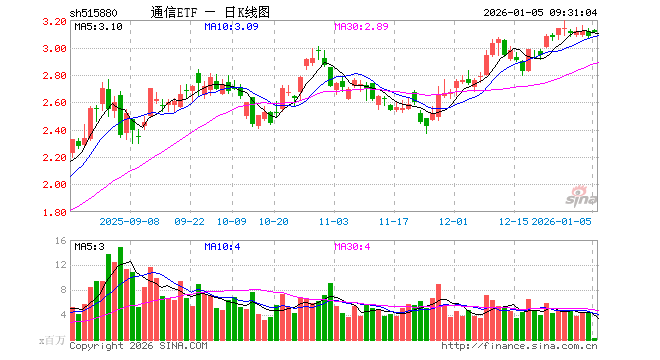 1月5日,通信ETF(515880)开盘涨1.46%,报3.125元。通信ETF(515880)重仓股方面,新易盛开盘涨1.42%,中际旭创涨1.82%,工业富联涨2.00%,中兴通讯涨0.00%,天孚通信涨1.95%,中天科技涨0.17%,亨通光电涨0.93%,传音控股涨0.00%,闻泰科技跌0.75%,剑桥科技跌0.28%。