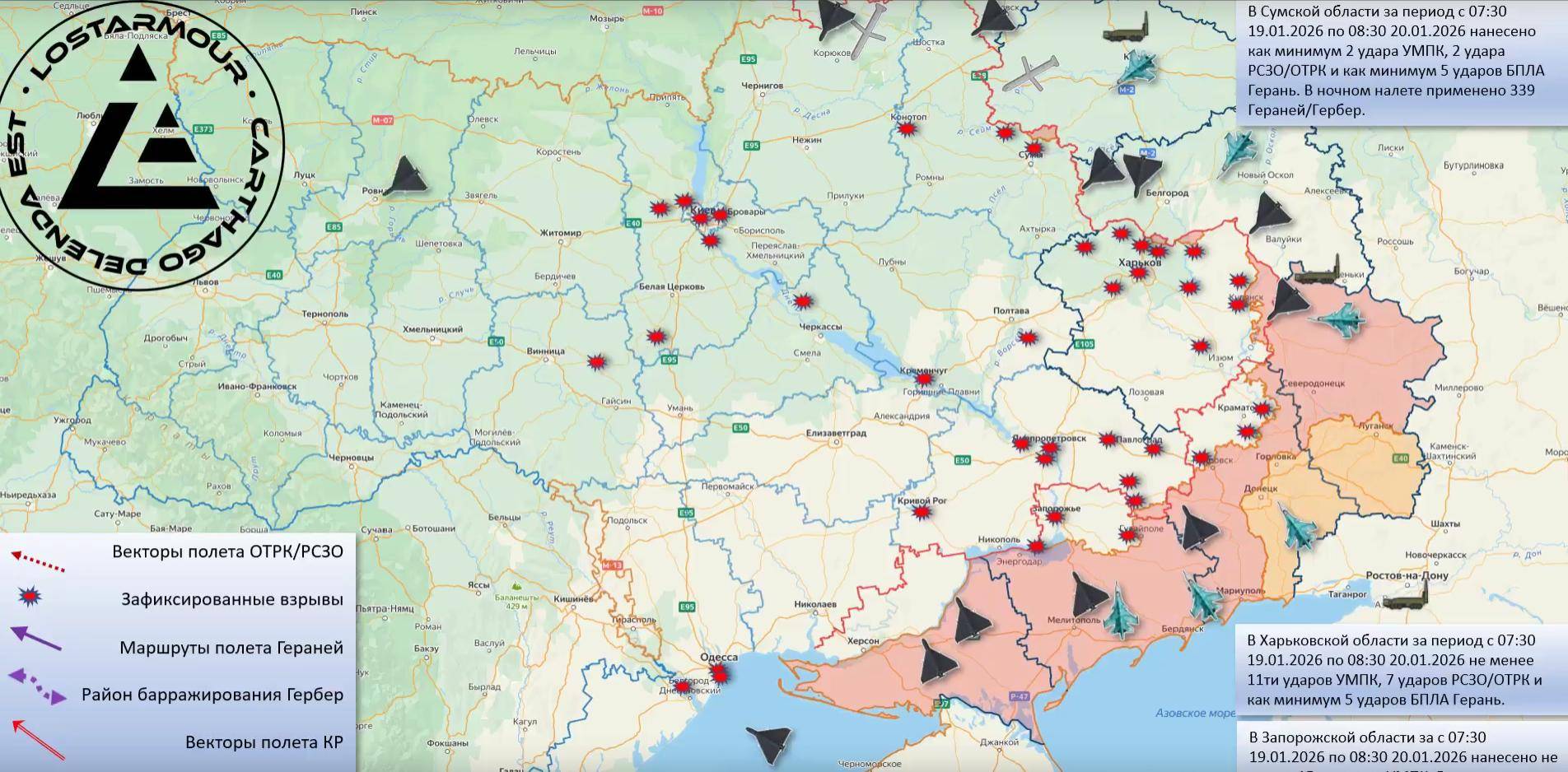在1月20日的大轰炸中,俄军此次打击的主要目标为乌克兰能源设施,乌克兰国防工业基础设施:俄军图-95MS战略轰炸机发射的9枚Kh-101巡航导弹轰炸了基辅州的扎希德纳,330千伏变电站;俄军图-95MS战略轰炸机发射的5枚Kh-101巡航导弹轰炸了基辅州白采尔克瓦地区能源设施;俄军发射了4枚伊斯坎德尔-M战术弹道导弹,轰炸了乌克兰第聂伯罗彼得罗夫斯克州的第聂伯罗重型液压机厂;·俄军2枚“伊斯坎德尔-M”战术弹道导弹轰炸了基辅州CHP-6热电厂;俄军2枚“伊斯坎德尔-M”战术弹道导弹轰炸了基辅州CHP-4热电厂。