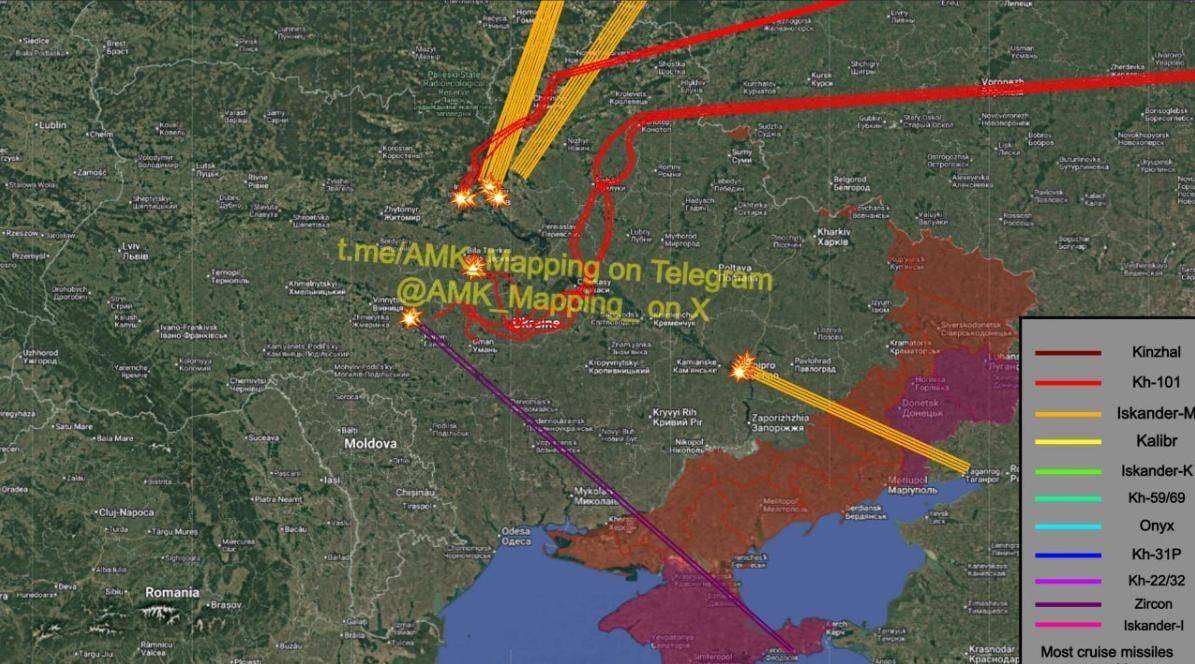 由于乌克兰军队最新补充了一大批“爱国者”防空导弹,德国,法国,英国送去的各种防空导弹,乌克兰军队在20日的防空战中,大量消耗北约送去的防空导弹,按照乌克兰空军的说法,“乌克兰防空部队拦截了11枚伊斯坎德尔-M战术弹道导弹和7枚Kh-101巡航导弹。”也正是乌克兰军队无限度发射北约送去的爱国者等防空导弹,暴露了北约防空导弹弹药库,导致俄军可以快速锁定乌克兰境内北约的弹药库存放地:文尼察州文尼察市东南部,俄军下血本发射了2枚天价的,一枚就1000万美元的“锆石”高超音速巡航导弹进行打击。