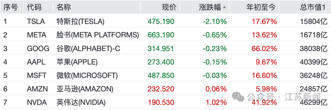 板块方面,昨夜今晨美股大型科技股多数下跌,万得美国科技七巨头指数跌0.06%。个股方面,特斯拉跌超2%,脸书跌0.65%,谷歌跌0.23%,苹果跌0.15%,微软跌0.03%,亚马逊涨0.06%,英伟达涨逾1%。